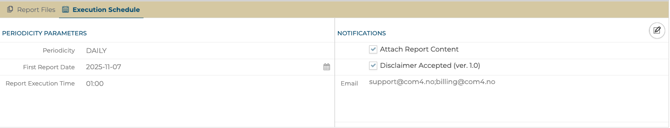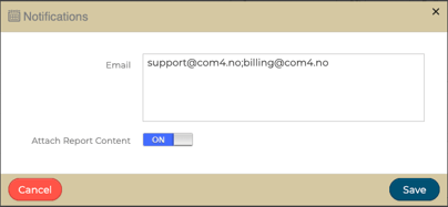 Fill inn email address(es) separated by semicolon. By default the Attach Report Content is disabled (link-only mode) and a link to the report will be sent to the email address(es). By selecting the Attach Report Content, the generated report file will be attached to the outgoing email:
